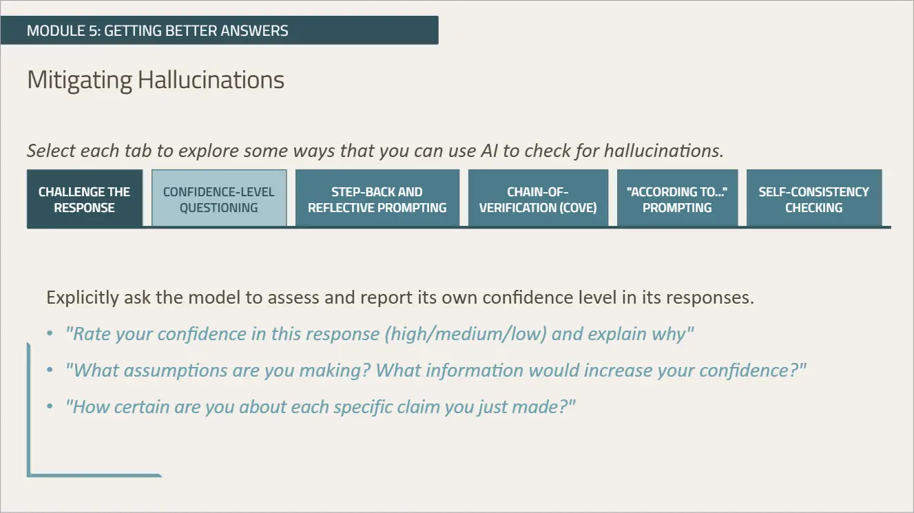 ✓ Recognizing and mitigating AI hallucinations using verification techniques.