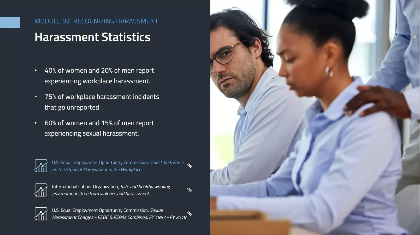 This course focusses on harassment in the workplace. We’ll explore what harassment is, its different forms, and how to prevent it in the workplace. Harassment exists on a continuum—from subtle or seemingly minor behavior to demeaning actions to, in severe cases, even physical violence. It is crucial to recognize, prevent, and address such behaviors early to maintain a safe, respectful workplace. But it’s also important to do so wisely, recognizing what constitutes harassment, what does not, and responding appropriately, fairly, and consistently.